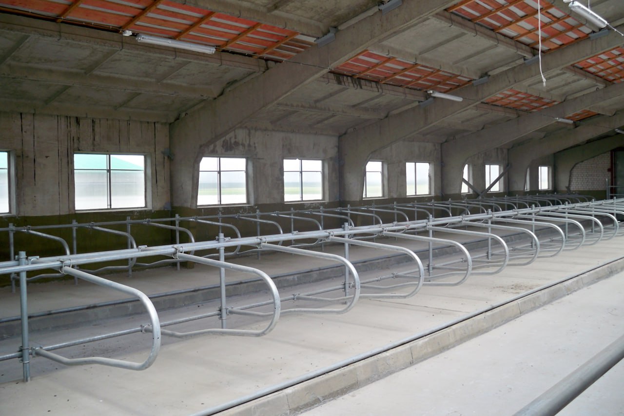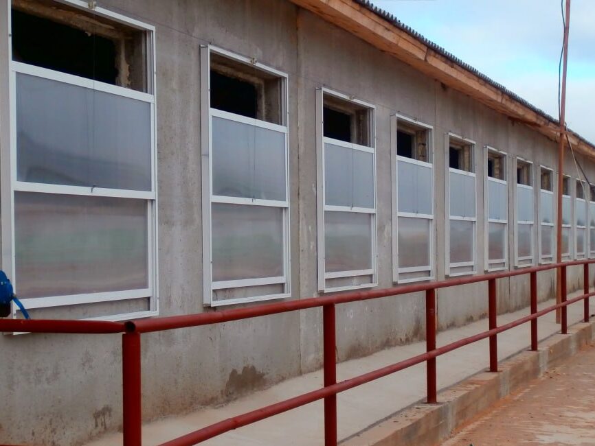 Светопрозрачные, ветрозащитные шторы с ручным приводом. Шторы оснащены крайними боксами, предотвращающими задувание ветра со стороны. Включают в себя сетку, защищающую от проникновения птиц в коровник.